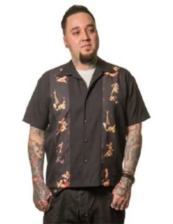 Steady Clothing Mid Century Marvel Bowling Rockabilly Charcoal Button Down Shirt ST35375
