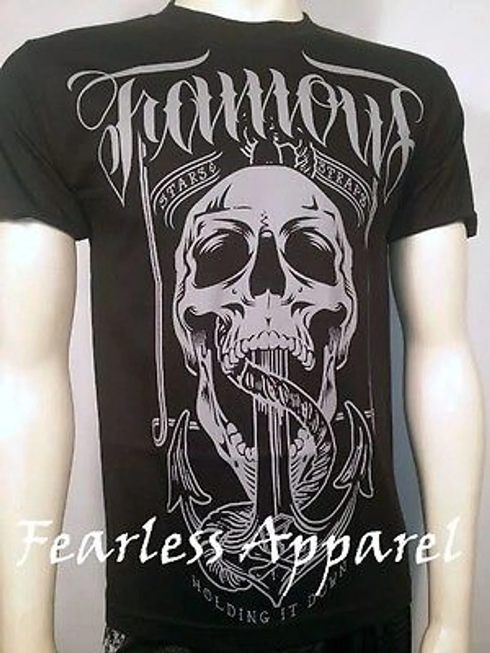 FAMOUS STARS & STRAPS HOLDING IT DOWN SKULL ANCHOR PUNK URBAN T TEE SHIRT S-2XL