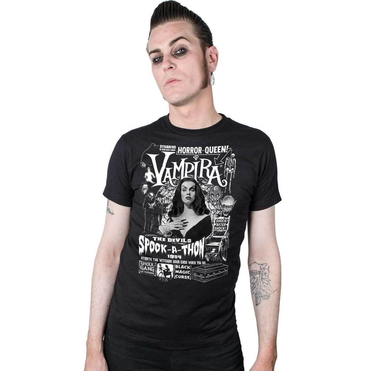 Official Vampira Spookathon t-shirt by Kreepsville, discharge front print on soft feel 100% cotton tshirt. Made in the USA.