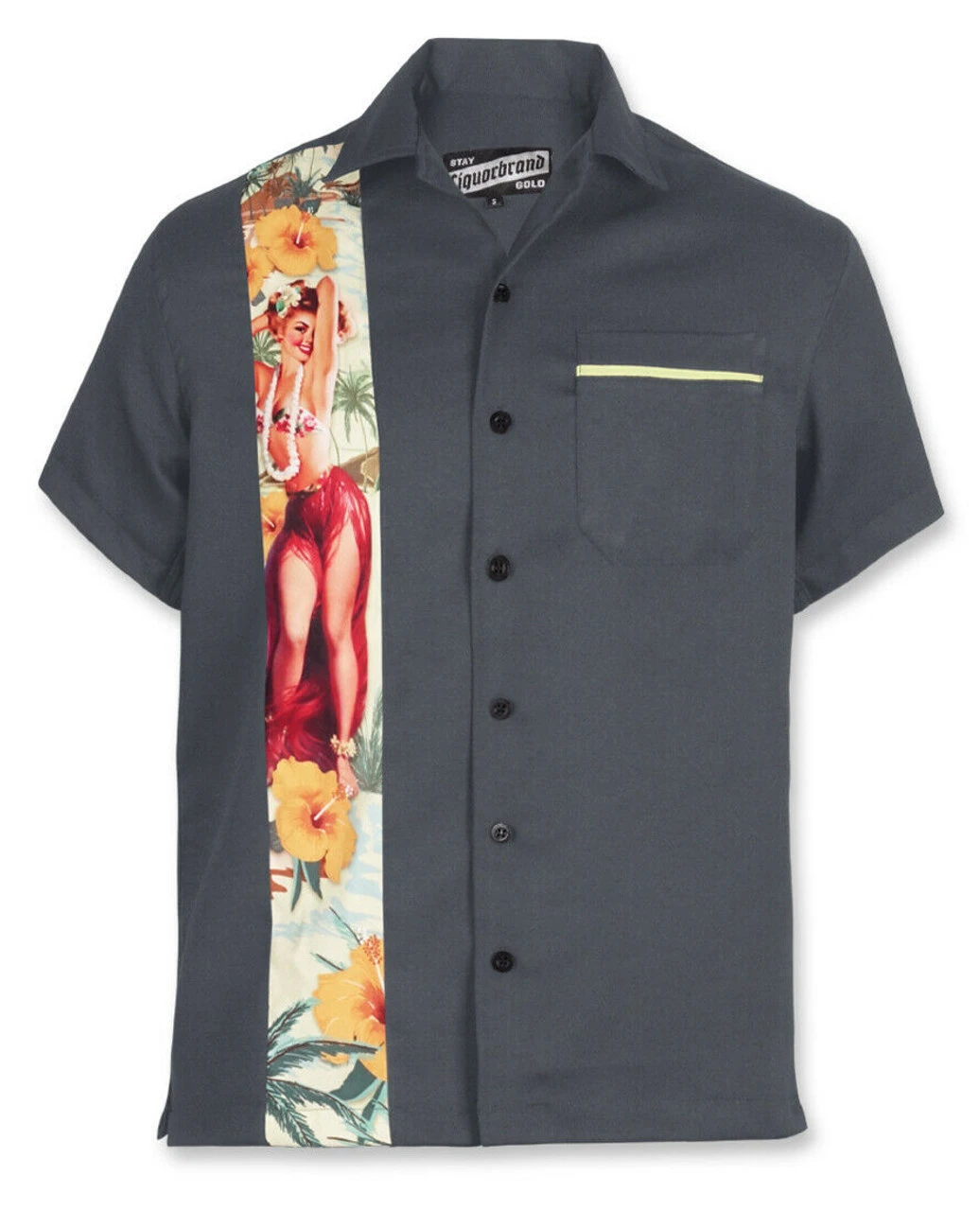 Men’s classic bowling shirt with contrasting sleeves and collar.