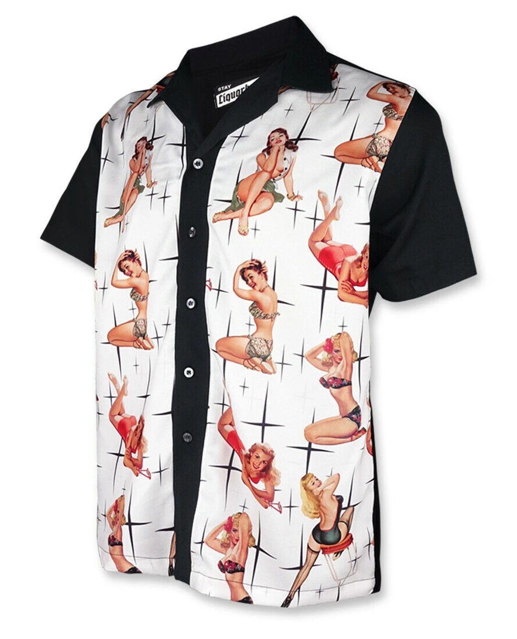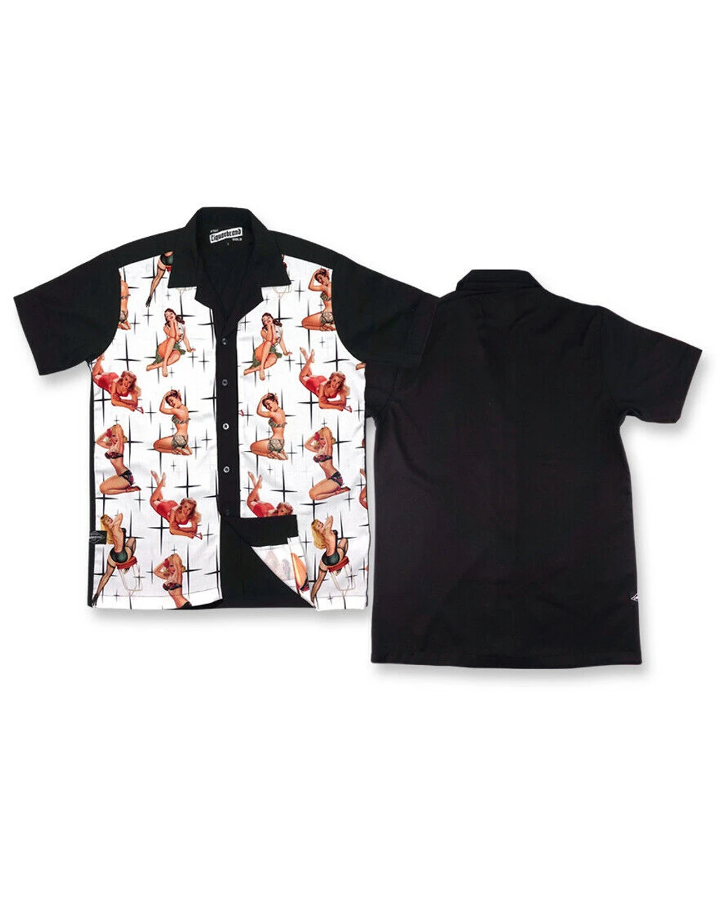 Steady Clothing Mid Century Marvel Bowling Rockabilly Charcoal Button Down Shirt ST35375