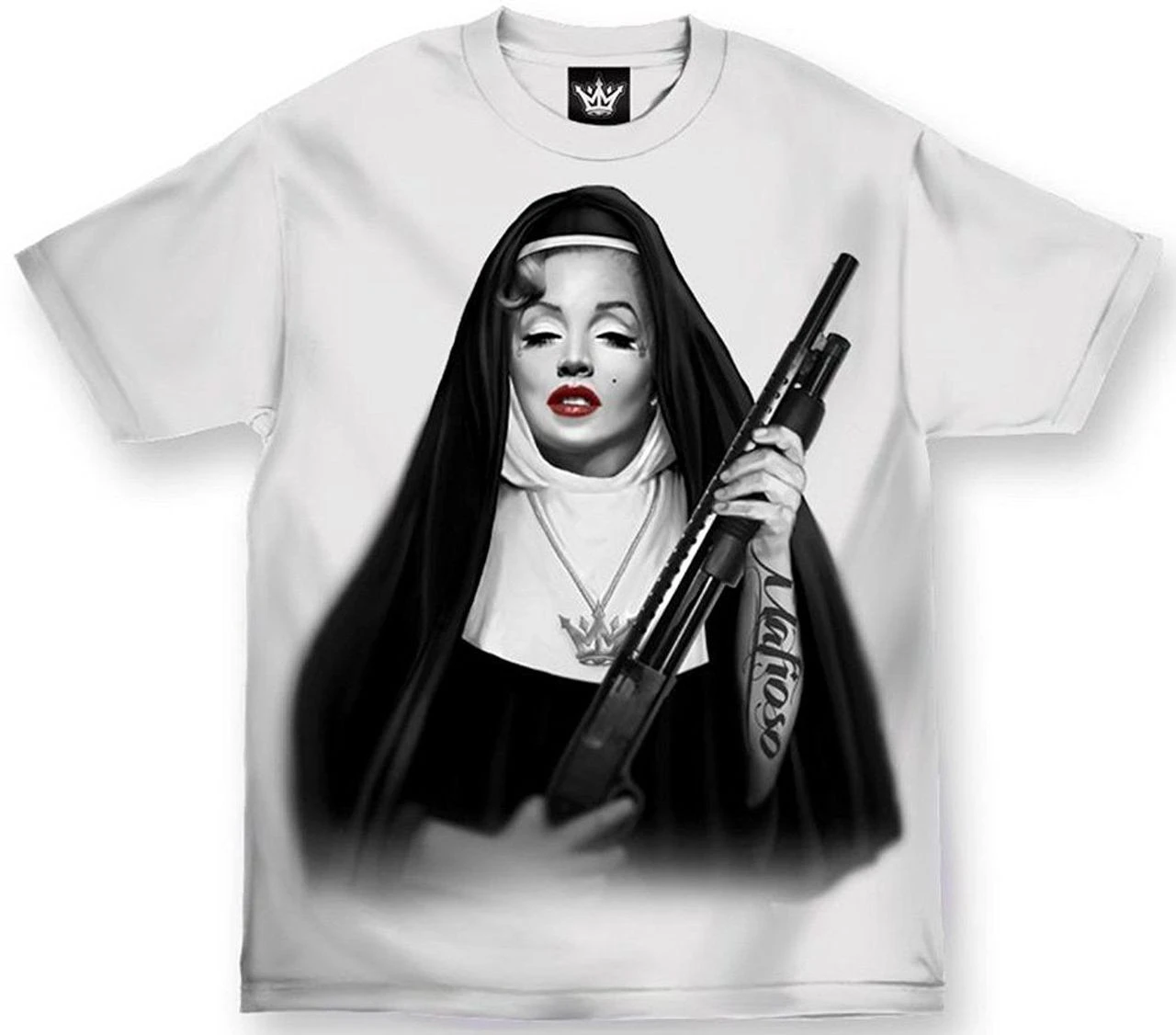 Be the first to review “Mafioso Sister Monroe Saint Jesus Urban Thug Nun Gun Mens White Shirt MTMM52001” Cancel reply