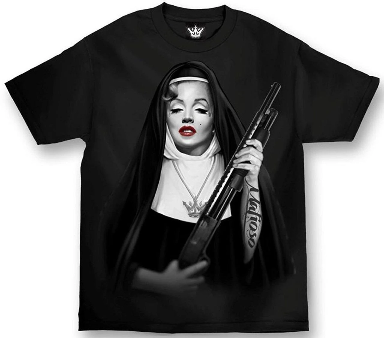 Mafioso Sister Monroe Urban Thug Nun Holy Saint Black Mens T Shirt MTMM52001