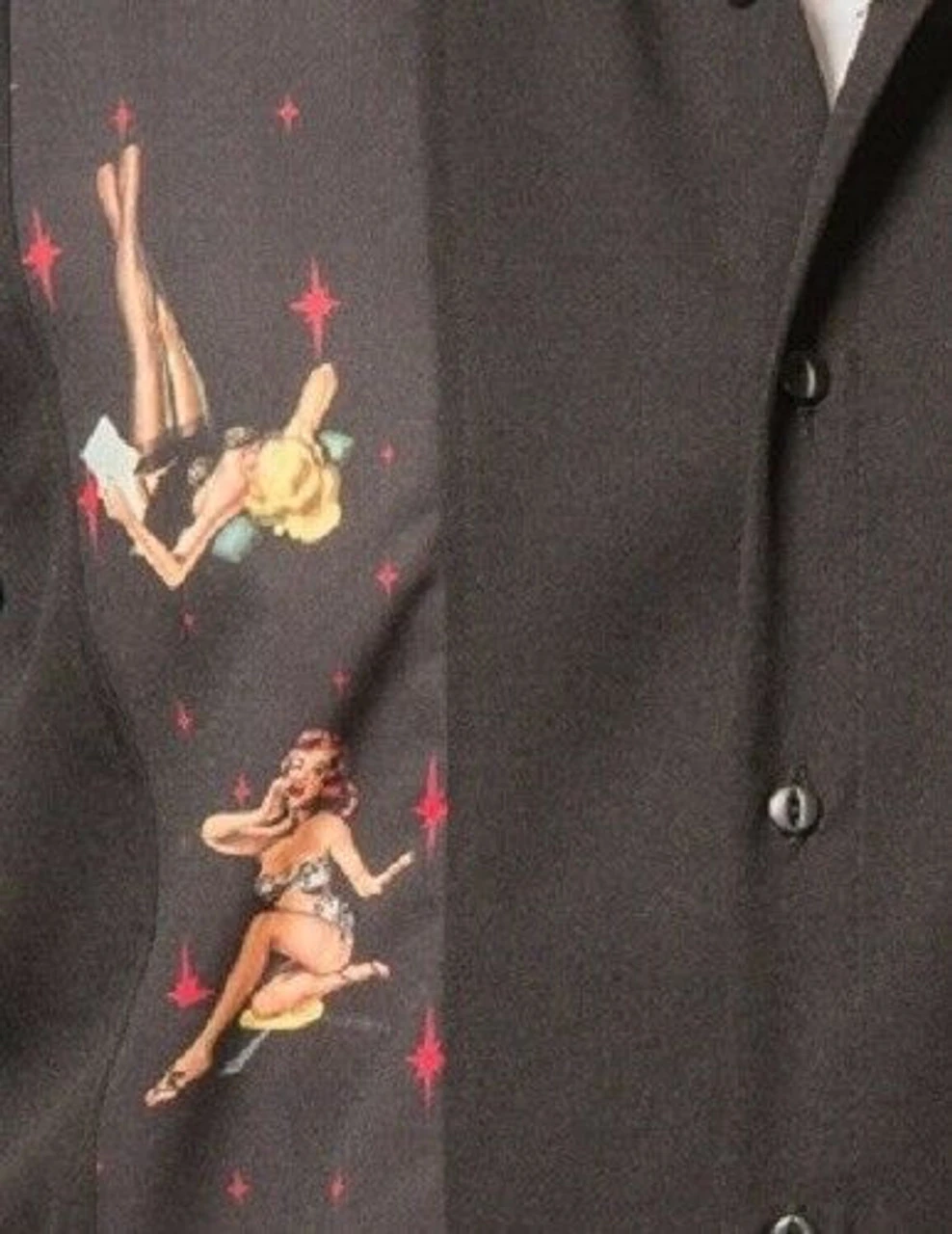 Pinups galore! The Multi Pin Up Panel Button Up is one of our most popular styles! This double panel button features a stunning custom design of assorted pin up girls.