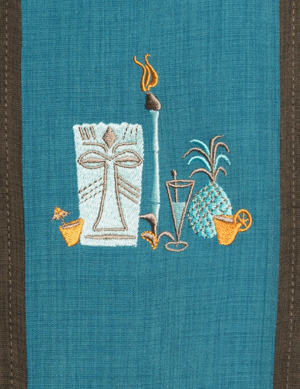 If you are planning on staying in for the night or hitting the town The Mickey Button Up is great for either occasion. This fun yet durable shirt is comfortable enough to lounge in and stylish enough to be seen in. The Mickey is made from a blend of pop check and mirage fabric and is 100% polyester. The two-tone short sleeve shirt features an embroidered tiki with drinks and a torch in the upper right corner. Available in Black, Charcoal, and Brown.