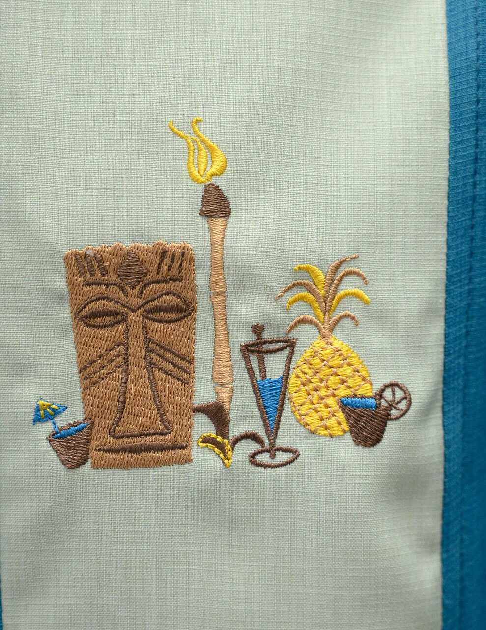 If you are planning on staying in for the night or hitting the town The Mickey Button Up is great for either occasion. This fun yet durable shirt is comfortable enough to lounge in and stylish enough to be seen in. The Mickey is made from a lightweight popcheck fabric and is 100% polyester. The two-tone short sleeve shirt features an embroidered tiki with drinks and a torch in the upper right corner, and custom metal tiki buttons.