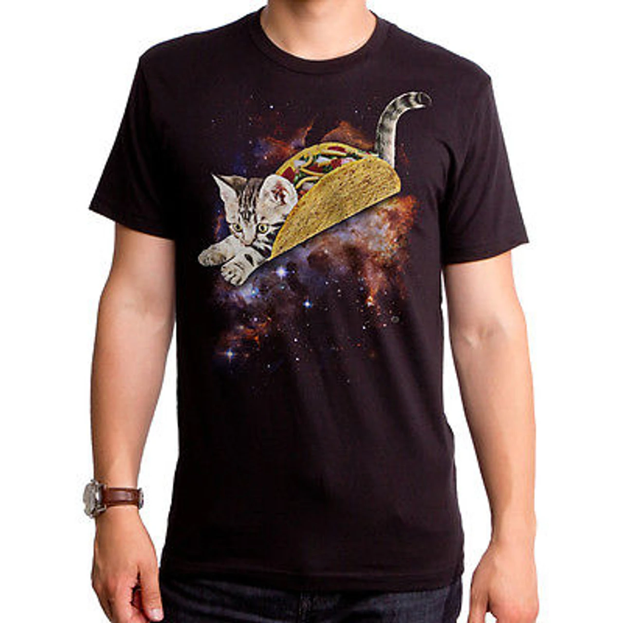 TACO CAT ADORABLE CUTE KITTEN OUTER SPACE STARS SOLAR SYSTEM MENS T SHIRT S-2XL
